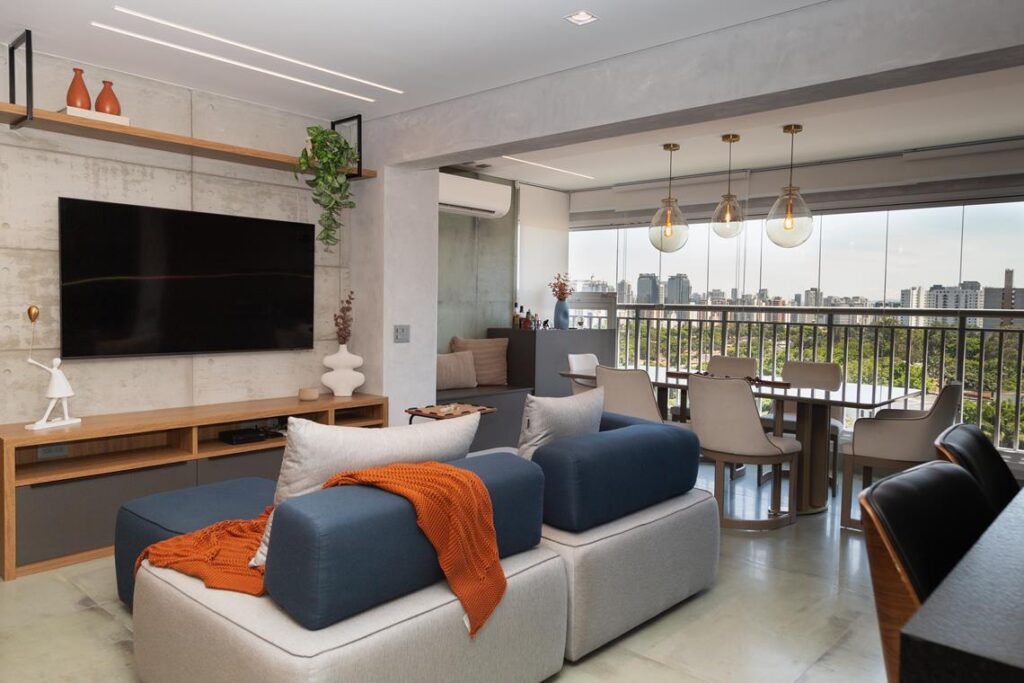 Com uma paleta de cores marcante, o projeto, de acordo com a arquiteta Mariana Bamont, é atemporal e favorece a convivência dos moradores, já que possui áreas amplas que foram muito bem aproveitadas.
