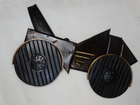 Como um quebra-cabeça aleatório, Pithon parafusa os utensílios, montando-os através de suas formas iniciais que, ao final, recebem o acabamento com betume e tinta para ferro. “Vejo um material e imagino em que poderia transformá-lo, isso preservando ao máximo a sua estrutura e montando a partir da forma que já existe”, explica.