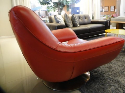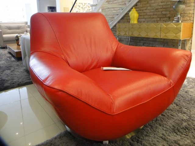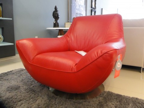 O modelo em destaque é a Poltrona Crosia, da Italsofa, de forma elegante e arredondada, possui em sua base de metal o mecanismo giratório que confere mobilidade e elegância à peça.