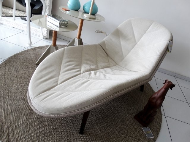 Com forma que valoriza o conforto e a sensação de acolhimento, a chaise Folha pode ser encontrada na loja Azteca, na Avenida Getúlio Vargas.