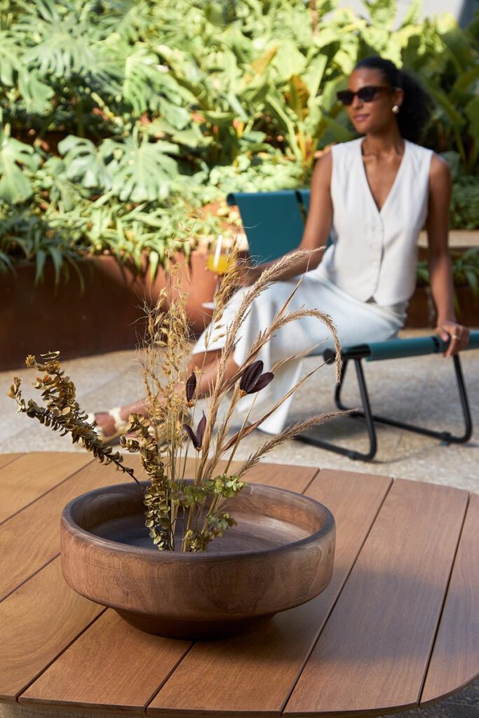Na MART, marca reconhecida por suas peças de design autoral e curadoria, a madeira sempre esteve presente como parte da essência. Mas o olhar sobre ela evoluiu, pois o retorno ao protagonismo reflete o desejo crescente por conforto e conexão com a natureza. Esse movimento reforça a valorização do imperfeito e do real.