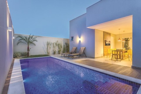 O projeto de reforma e ampliação é de uma casa localizada dentro de um condomínio fechado, na cidade de Feira de Santana, tendo a área original de 85,00m² acrescida de uma ampliação de 55,00m². Pensada lado a lado com os anseios dos clientes, a ampliação foi concebida pela criação de uma varanda gourmet e um lavabo, integrando a área social à área do deck da piscina. A criação deste espaço possibilitou a ampliação das áreas de serviço, que se tornaram mais reservadas, atendendo às demandas da casa e gerando assim espaços ainda mais funcionais. Com a necessidade de ampliação na área frontal para criação da garagem, aproveitamos para modificar a fachada com a utilização de linhas retas, tons sóbrios e revestimento 3D, surgindo, assim, uma fachada leve e contemporânea.