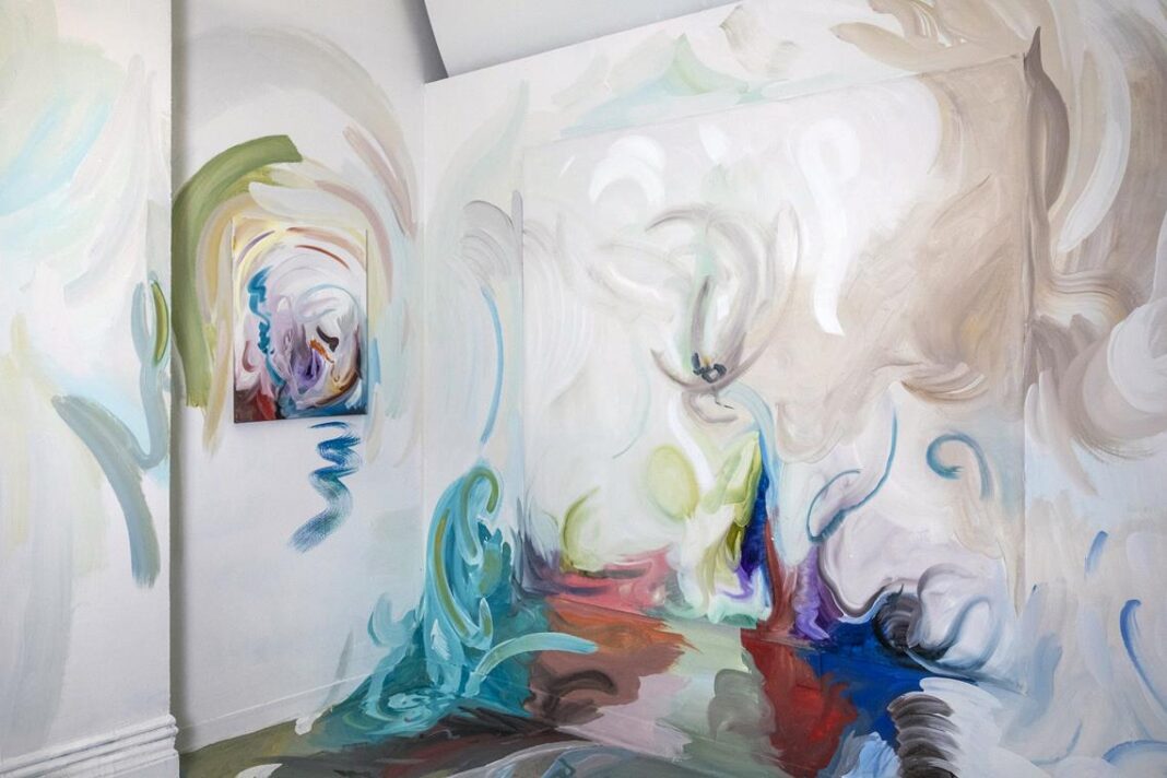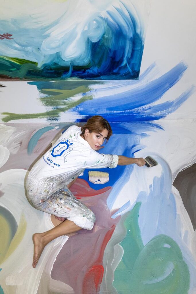 Entendo o ato de pintar como uma prática do corpo inteiro — quase uma psicografia pictórica, no sentido de que não é a mão que decide a imagem, mas o corpo que a conduz enquanto a mente se retira. Cada pincelada registra um tempo de execução que é físico antes de ser intelectual. É catártico. Na mostra em Nova York, isso se manifesta em telas de grandes dimensões, em trabalhos realizados diretamente sobre a arquitetura e em pinturas de menor formato que se apresentam como janelas ou fragmentos de um todo maior — um convite à memória, à observação e a outras perspectivas em relação ao espaço ao redor”, explica Pàulla Scàvazzini.