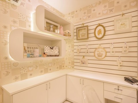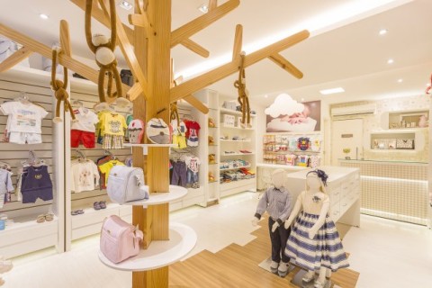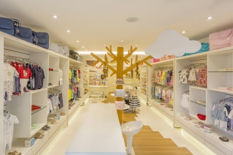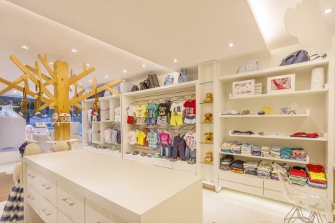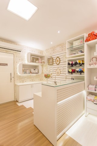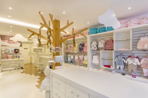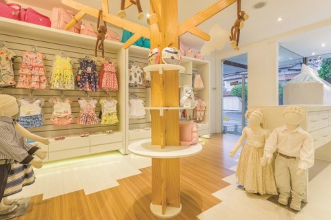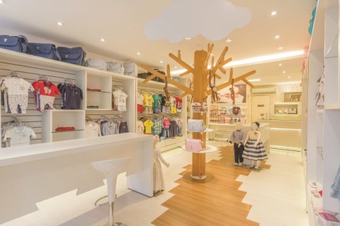 A loja de moda e móveis infantil, segundo Margareide, foi um projeto fácil de executar, pois a proprietária adora crianças e queria um ambiente encantador para os pimpolhos. O ponto de destaque foi uma árvore em MDF, feita pela marcenaria W Móveis. “O setor de roupas e acessórios para meninos e meninas foi desenvolvido visando a um ambiente moderno, aconchegante e com um atendimento personalizado”, enfatiza a designer. “A loja Bebezinhos selecionou para integrar a perfeição deste sonho uma foto de um bebê especial”, conta, frisando que o piso moderno e papéis de paredes foram encontrados na Dami Decorações e a iluminação é da Cerqueira Stylo.