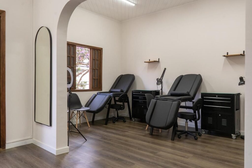 A escolha por referências residenciais foi central para transformar a experiência dentro do estúdio. Em vez de um ambiente com estética industrial ou fria, comum nesse tipo de negócio, o projeto aposta em acolhimento, conforto e proximidade. A arquitetura se torna, assim, parte fundamental da jornada do cliente.