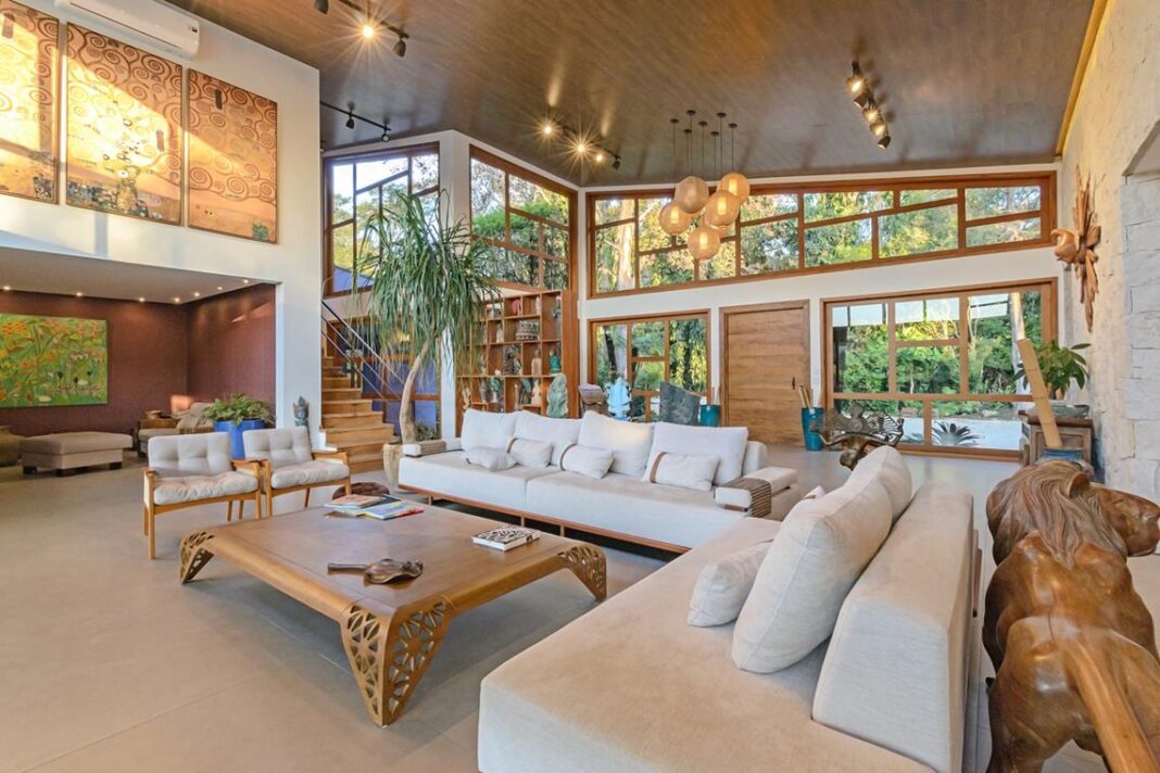 Assinada pelo arquiteto Daniel Szego, a casa de 603 metros quadrados é um verdadeiro refúgio onde o conforto, a espiritualidade e a integração com a natureza se encontram em perfeita harmonia. Com um projeto arquitetônico que valoriza materiais naturais, amplos espaços e iluminação generosa, a residência combina rusticidade e elegância com maestria.
