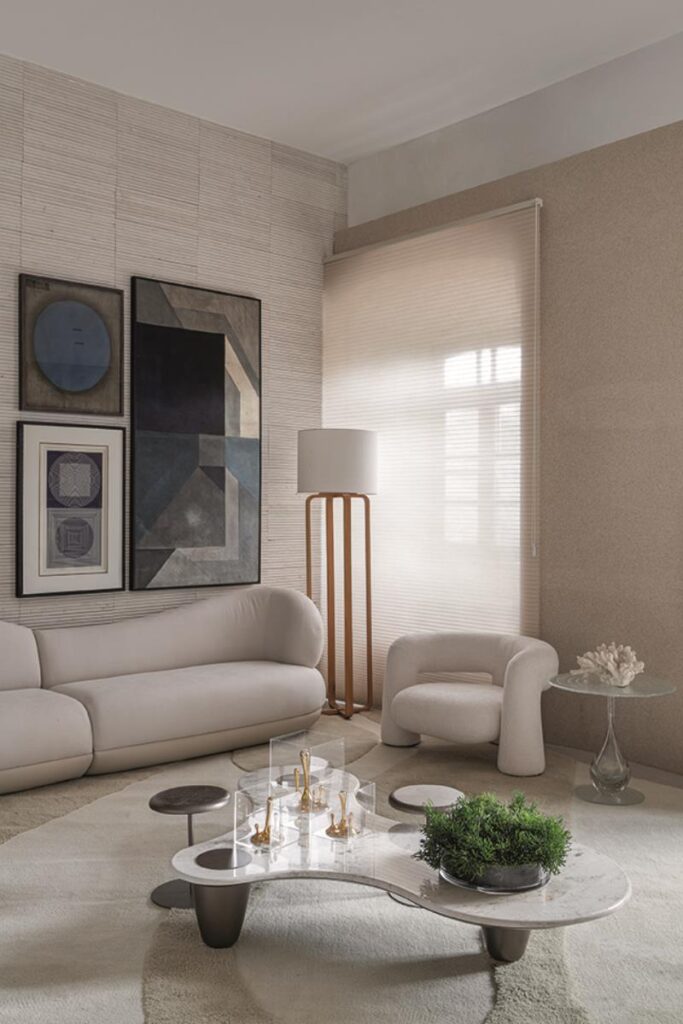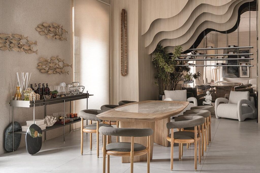 Assinado por Ana Nonato, o Living Praiano dos Sonhos traduz a leveza do viver à beira-mar. Com 65m², o ambiente propõe uma leitura contemporânea de uma casa de praia, com curvas orgânicas, paleta suave e materiais naturais que remetem à areia, à brisa e ao horizonte. O projeto integra design autoral, peças da Breton e mobiliário nacional, priorizando conforto, funcionalidade e sofisticação. A iluminação em camadas destaca texturas, obras e tramas artesanais, criando um ambiente sensorial e acolhedor. Revestimentos naturais, ondulações no mobiliário e detalhes que remetem às paisagens litorâneas completam a proposta.