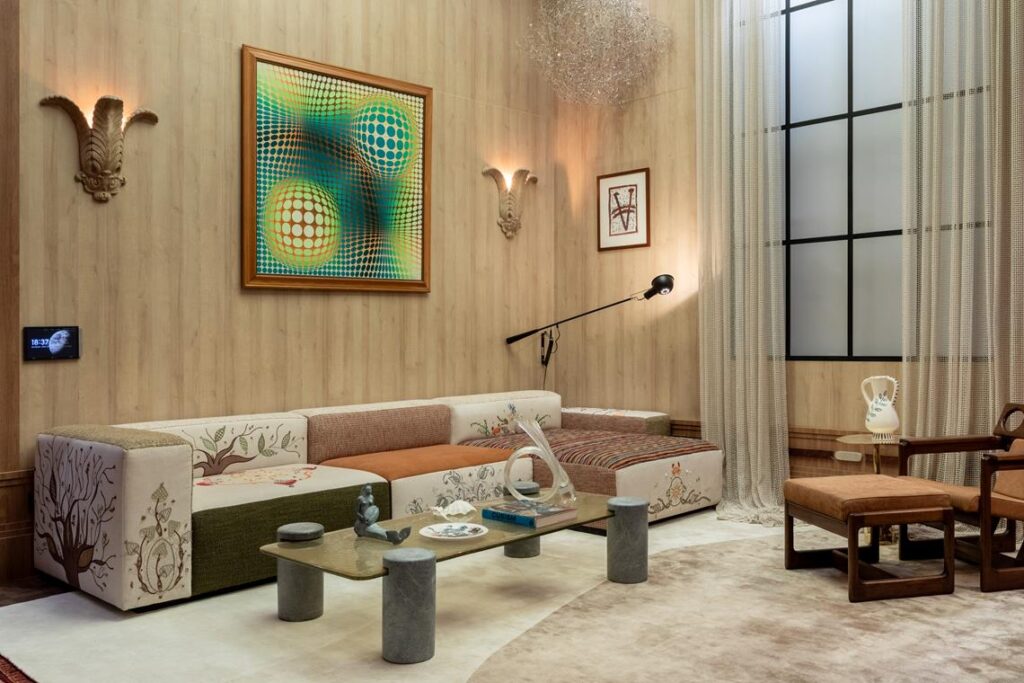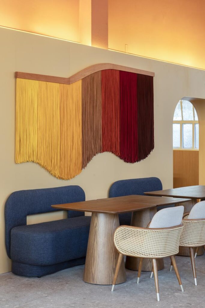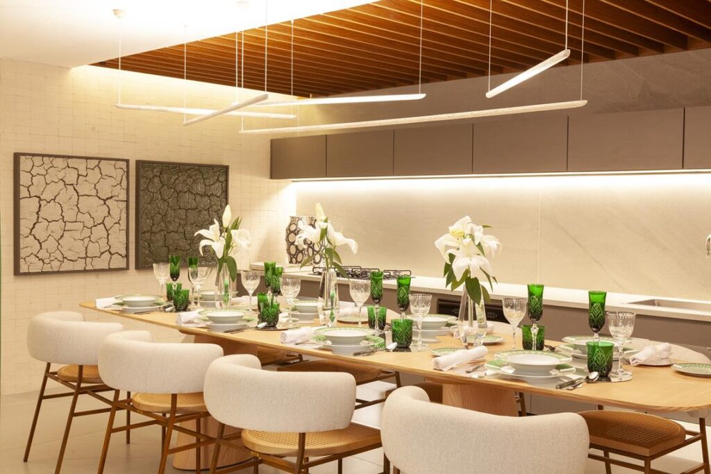 Outros destaques incluem a obra “A Ponte”, de Rocio Aguirre (Studio Aguirre), criada especialmente para aqueles que sonharam unir paladares e histórias em um só lugar, exposta no ambiente Casa Buriti da arquiteta Fernanda Rubatino. A paleta de cores evoca a serenidade das águas e a riqueza da flora pantaneira, trazendo sensação de acolhimento e harmonia ao ambiente.