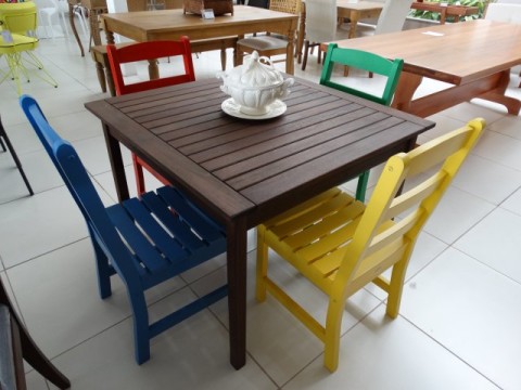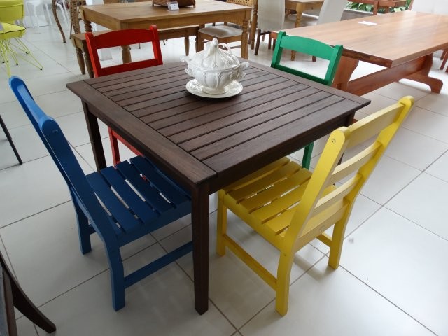Extremamente resistente e durável, são ideais para sala de jantar, cozinha, área gourmet e varanda, como sugere a empresa fabricante Espaço Casa e Jardim. A possibilidade de usá-las tanto em espaços internos como externos vem da utilização do impregnante Stain durante o seu acabamento. Esse produto tem a função de prolongar o tempo de vida dos produtos devido ao repelente à água, além de proteger a madeira contra os raios UV e ter propriedades inseticidas e fungicidas, proporcionando maior durabilidade do produto.