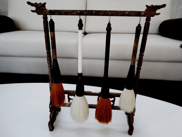 Os pincéis chineses são belas peças que criam uma charmosa produção sobre mesas de centro