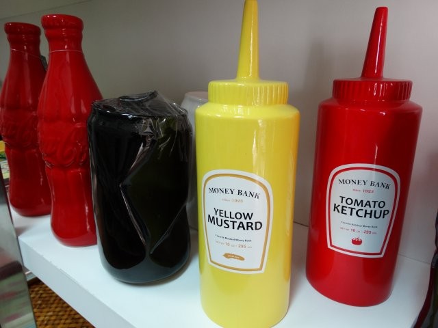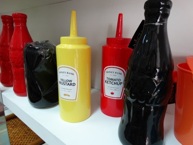 Os cofres em cerâmica de Ketchup, Mostarda e Coca-Cola unem o desenho divertido à utilidade de economizar de um jeito diferente