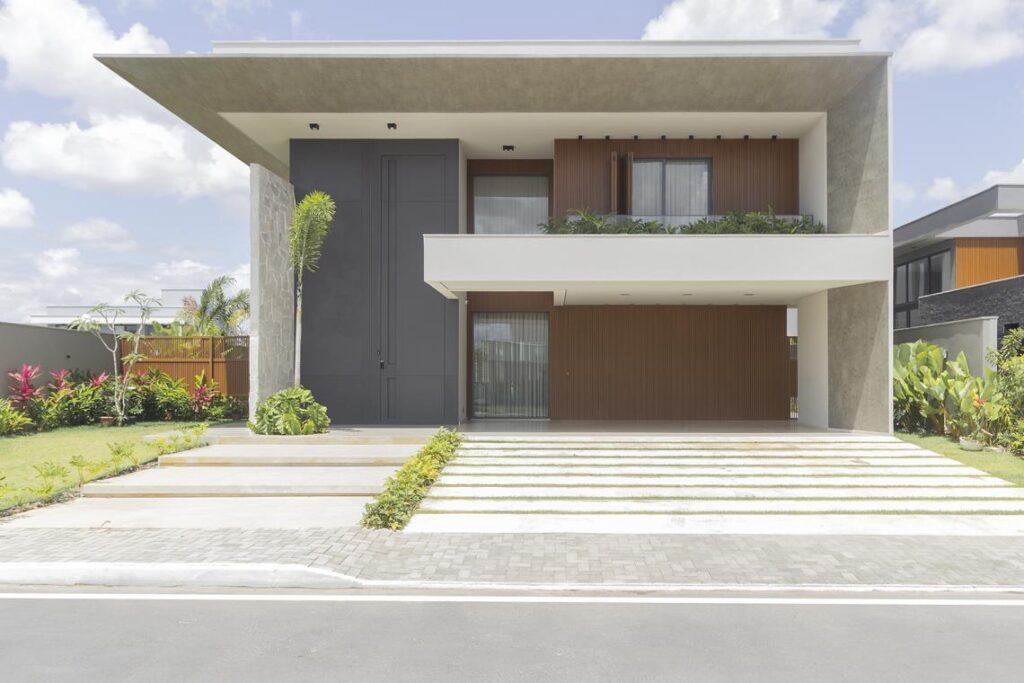 A suíte master se distingue pela amplitude e integração visual, com closet, varanda privativa e jacuzzi voltada ao jardim. Na fachada, o equilíbrio entre materiais e volumes define a identidade da obra: planos horizontais, painéis amadeirados e esquadrias generosas que reforçam o caráter contemporâneo do projeto. “Uma arquitetura autoral, que expressa a relação entre forma, conforto e estilo de vida”, concluiu Ivy.