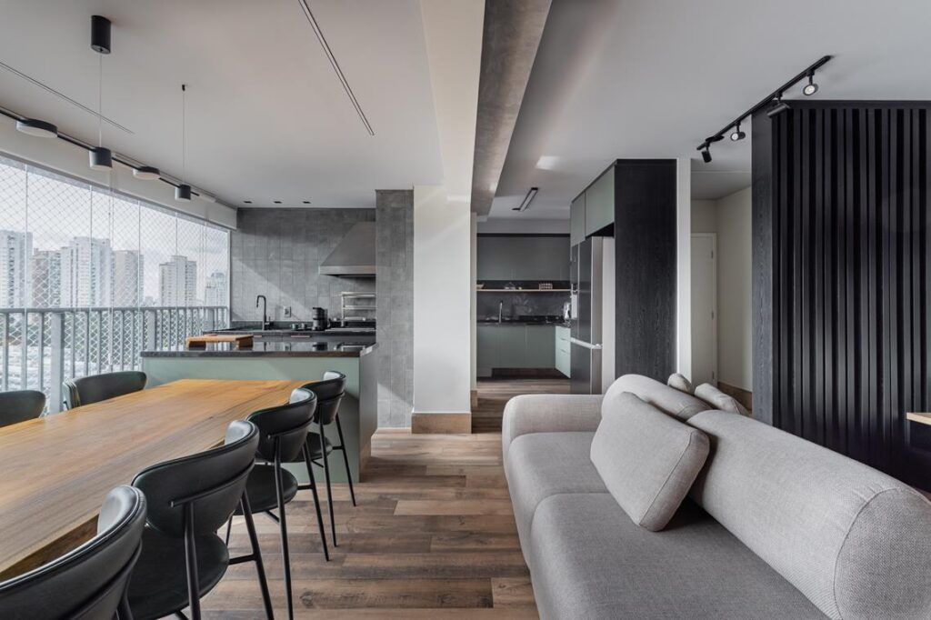 Com traços contemporâneos, personalidade e soluções inteligentes, este apartamento se transforma em um cenário sofisticado e funcional