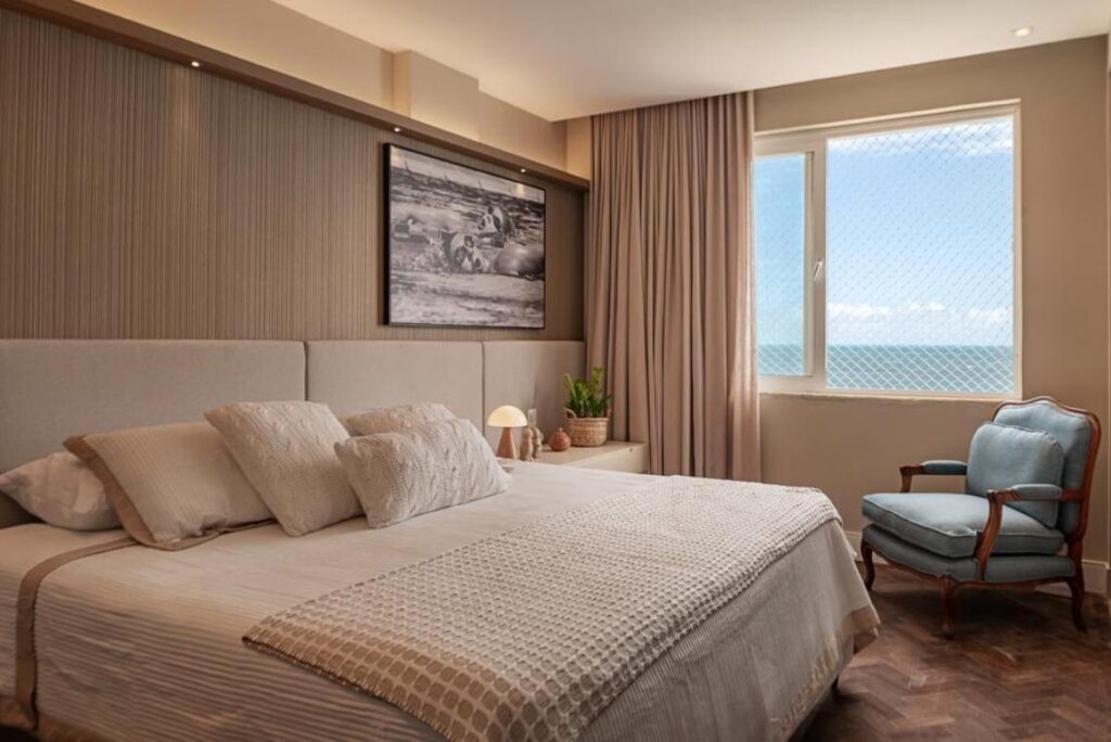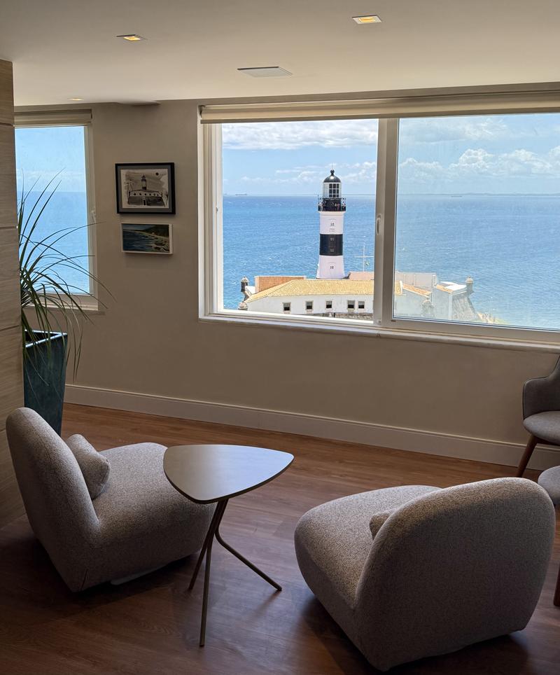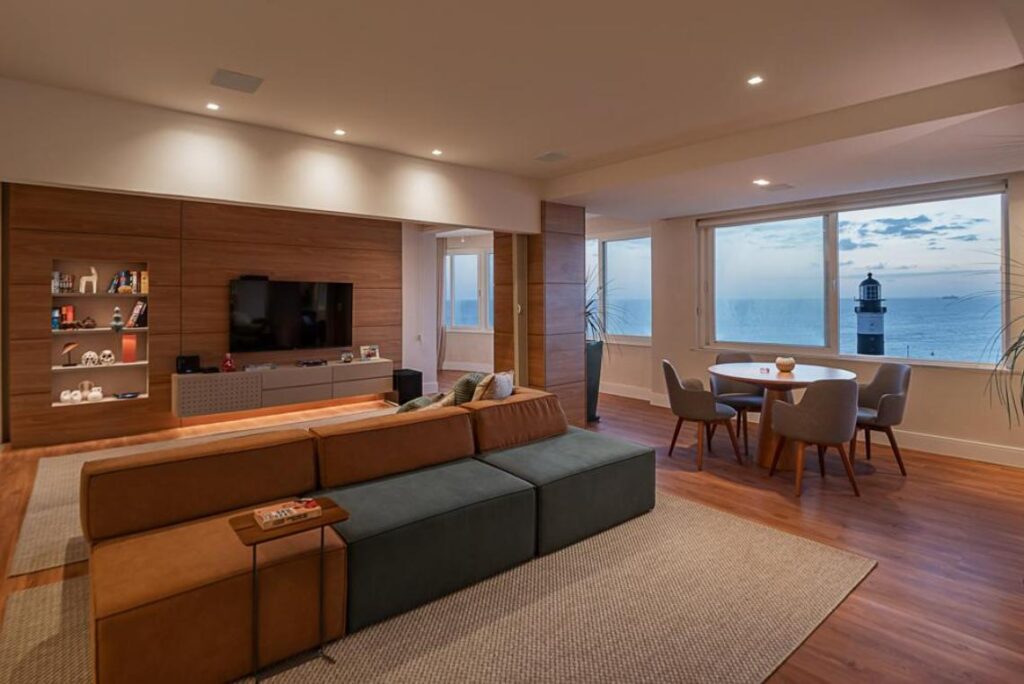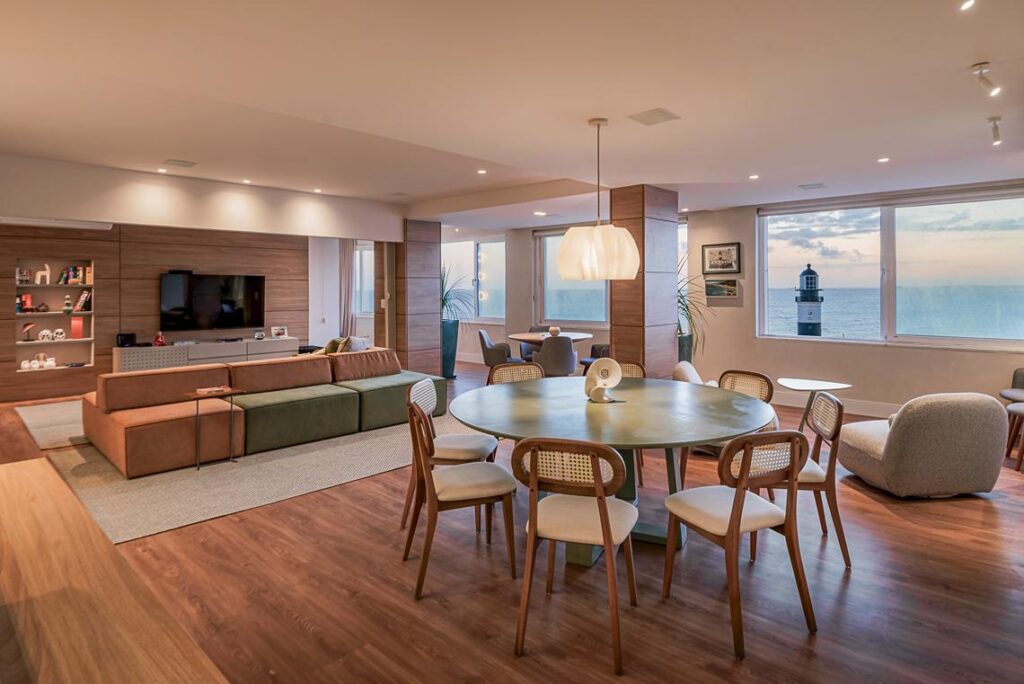 O projeto desenvolvido para este apartamento, no Edifício Oceania, em Salvador, partiu do desejo dos clientes de transformá-lo em um ponto de encontro da família e dos amigos. O imóvel, localizado no edifício tombado pelo Instituto do Patrimônio Artístico e Cultural da Bahia (IPAC), cuja construção começou em 1932 e foi concluída em 1943, e conhecido pela vista direta para o Farol da Barra, exigiu soluções que ampliassem a área social e destacassem a paisagem como elemento central da proposta.