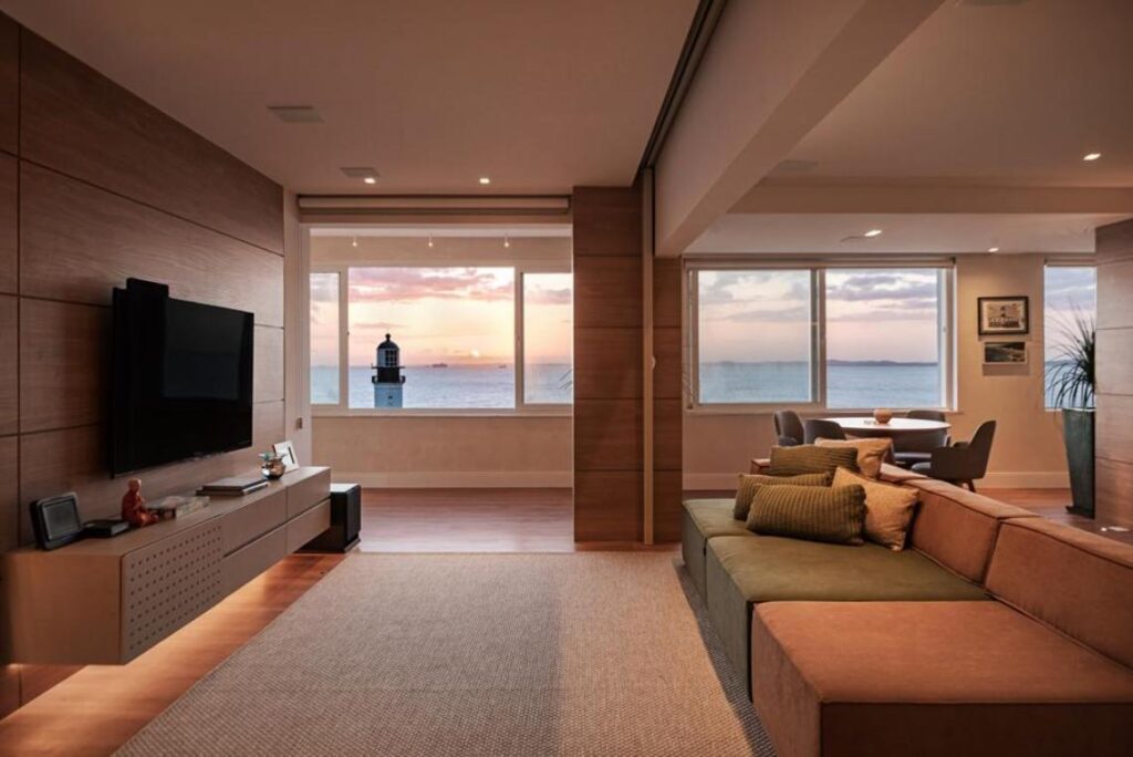 “O grande protagonista da residência seria a vista privilegiada do Farol da Barra, que invade o cenário interno, deixando tudo ainda mais significativo”, destacam os arquitetos, reforçando a diretriz que orientou todas as decisões do projeto.