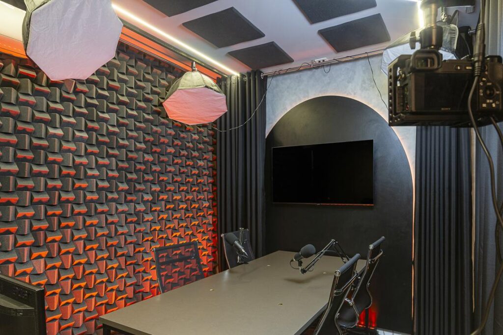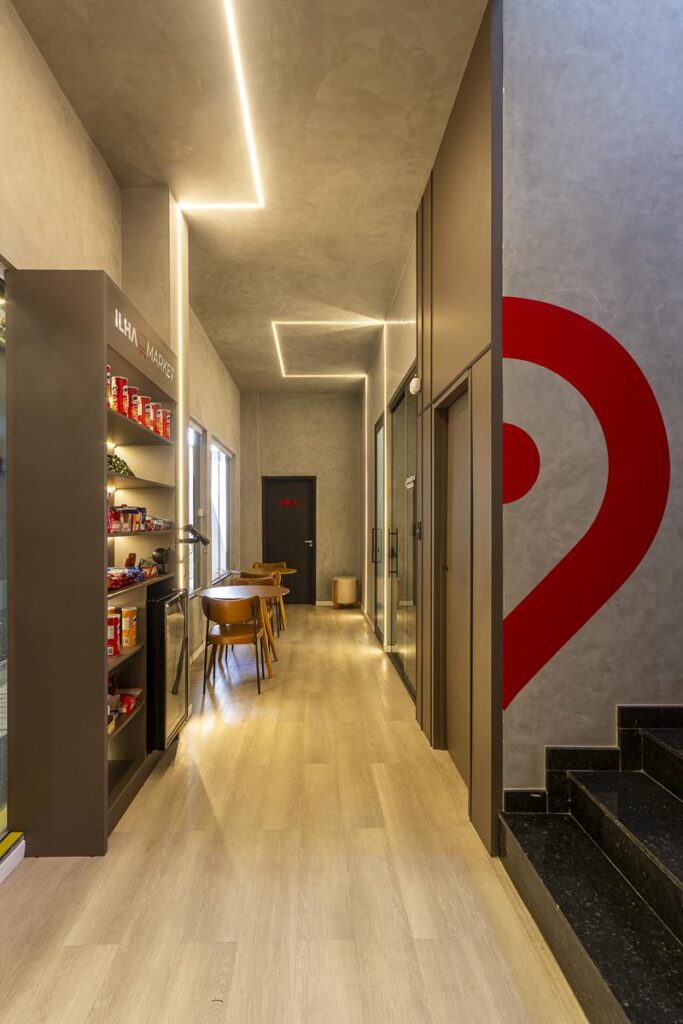 Os ambientes foram desenhados para oferecer funcionalidade e flexibilidade, sem renunciar à harmonia visual. O projeto inclui estações de trabalho compartilhadas, salas privativas, salas de reunião moduláveis, estúdios de podcast com tratamento acústico e áreas de convivência conectadas. “Essa organização favorece o uso dinâmico dos espaços e estimula a interação entre os usuários, estimulando trocas criativas e networking”, acrescentou Laíza Bastos.