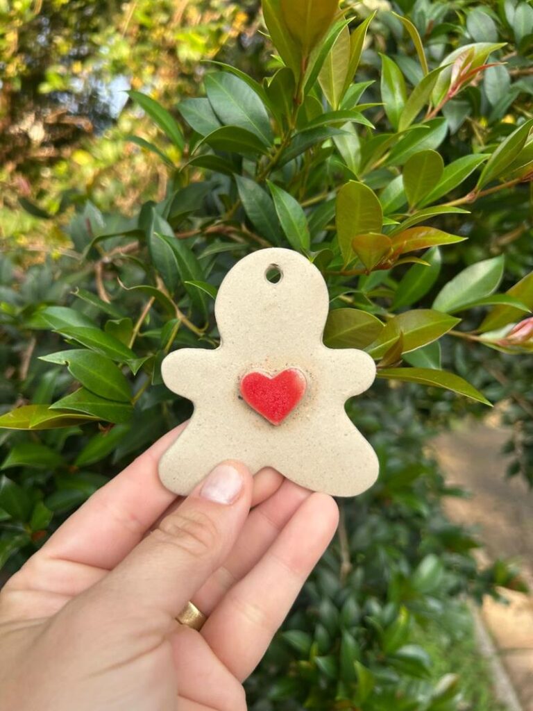 Inspirada por esse espírito, a ceramista e arquiteta Gisela Pedroso transforma tradições em arte por meio de suas criações em cerâmica. Com delicadeza e poesia, a artista renova a estética natalina com peças que unem memória, técnica e emoção. Entre os enfeites dedicados à data, destacam-se as guirlandas de cerâmica, reinterpretadas em composições únicas, os clássicos símbolos como o biscoito de gengibre, as casinhas iluminadas, os corações e o brilho das estrelas para serem pendurados nas árvores. Cada elemento é moldado manualmente, resultando em peças que carregam alma, textura e o toque humano, atributos impossíveis de serem reproduzidos em série.