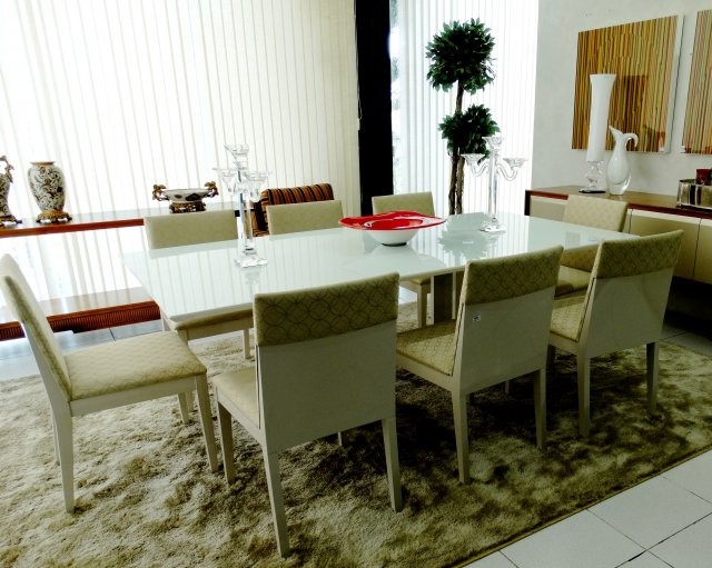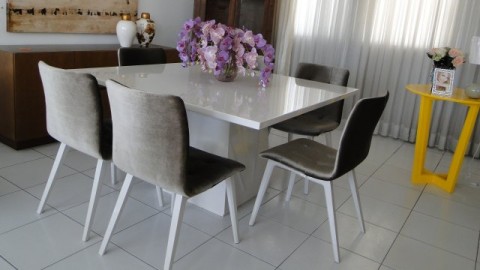 Uma sugestão de produção é pontuar o cômodo com o sofisticado detalhe de uma mesa branca em laca, considerada como uma peça coringa na decoração, que vai bem a todos os estilos, sobretudo naqueles que têm como principal característica valorizar o espaço claro e arejado.