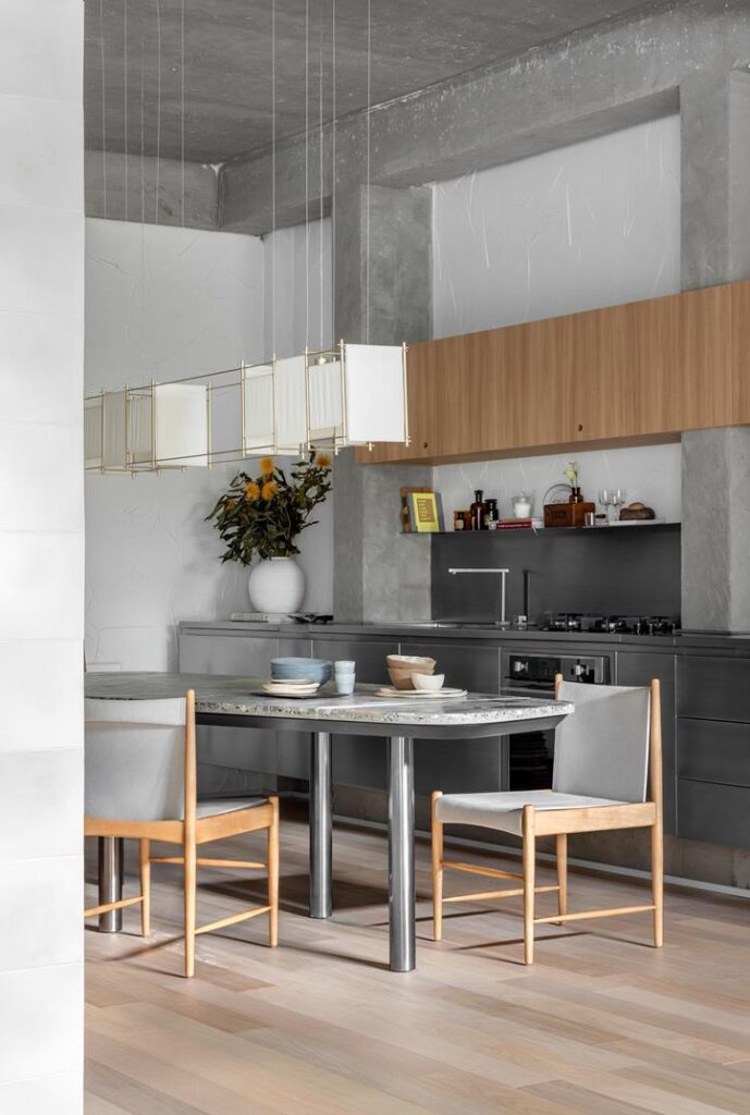 Entre os parceiros de Gabriel Bordin na CASACOR Santa Catarina Florianópolis 2025 estão: Cuisinart, Deca, Guararapes, Mels Brushes, Morada Eco, Presence, Reveev e Tintas Coral.