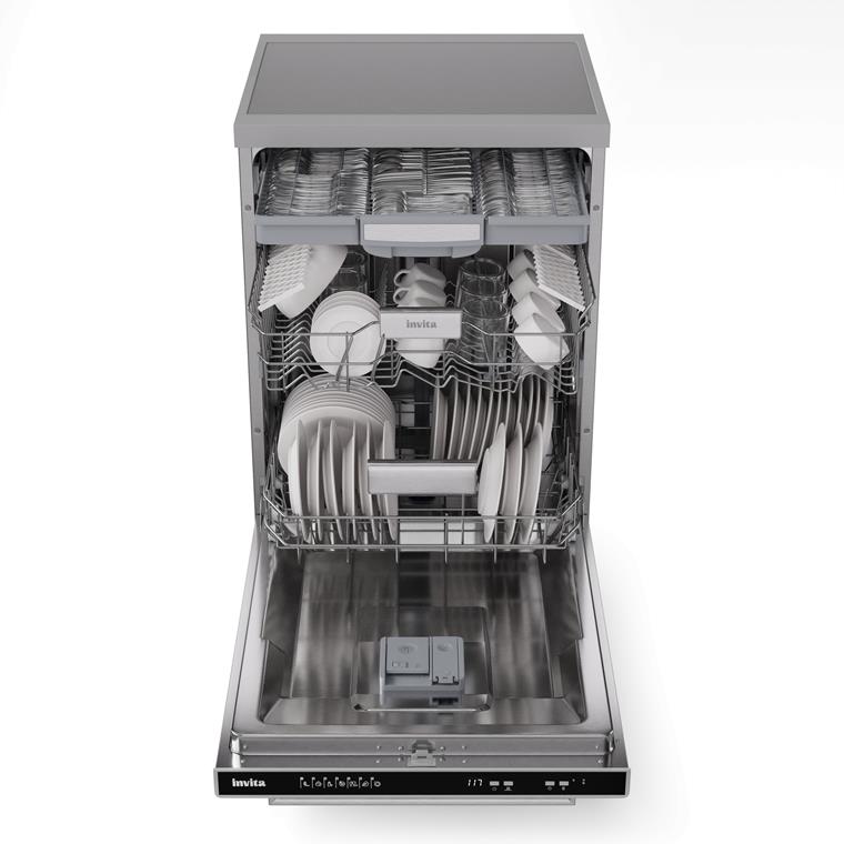 Apresentada ao público durante a última edição da feira Revestir, a maior do segmento na América Latina, a lava-louças Invita 15 Serviços Inox 220V chega às lojas de revenda a partir de julho como uma das apostas da marca para unir sofisticação, performance e praticidade na cozinha. Com instalação freestanding e acabamento elegante em inox, o modelo se adapta facilmente a diferentes estilos de projeto, conferindo um visual moderno e discreto ao ambiente.