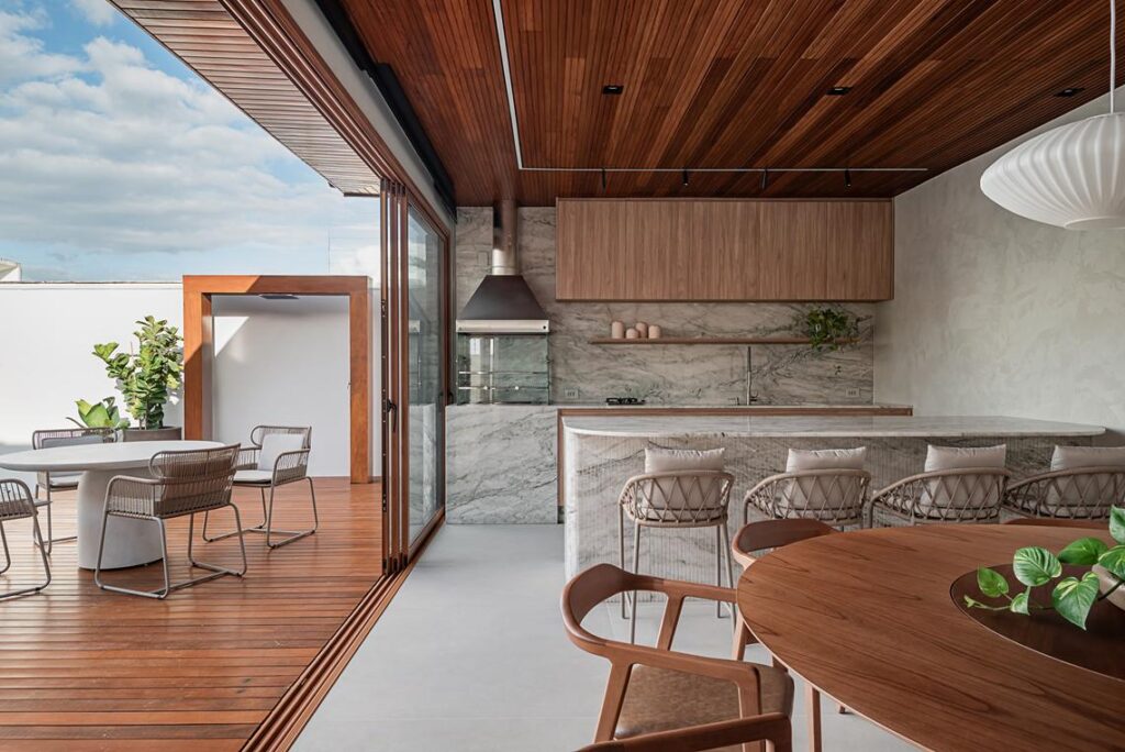A escolha por uma paleta neutra e atemporal transmite acolhimento sem renunciar à elegância. O projeto traduz a prioridade dos moradores e estabelece uma relação direta entre convivência, fluxo e desempenho espacial. “Um refúgio contemporâneo que equilibra bem-estar, receptividade e design, refletindo com autenticidade o estilo de vida dos moradores”, finaliza.
