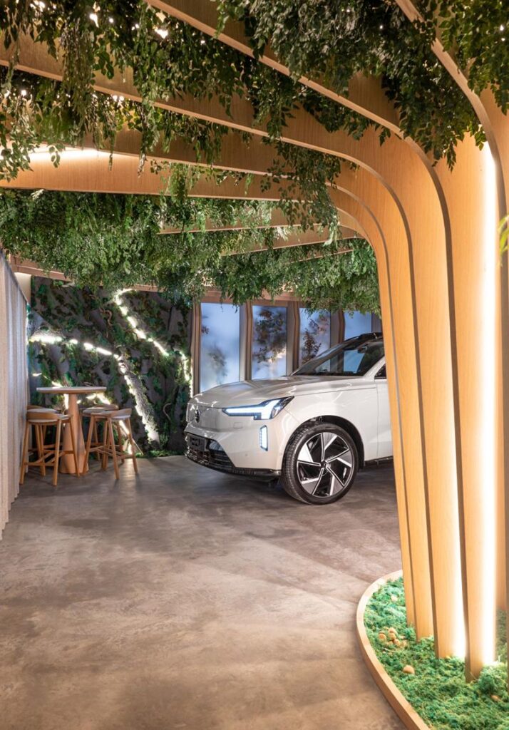 Conexão entre Caminhos é um ambiente de 97 m2 inspirado no estilo escandinavo, onde o carro ganha protagonismo como peça de design, integrando-se com elegância à arquitetura. Materiais nobres, iluminação acolhedora e vegetação exuberante compõem um espaço que desperta sensações e inspira novos começos. Um refúgio que une conforto, natureza, tecnologia, inovação e sofisticação para uma imersão no universo Volvo.