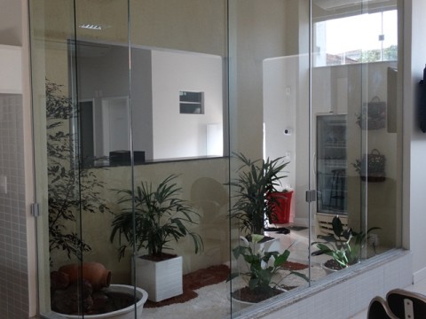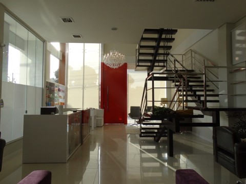O primeiro pavimento é composto pelo ambiente de recepção, cadeiras de escovistas, lavatórios, sala de química e coloração, duas salas de depilação, um almoxarifado, dois banheiros, copa, sala para descanso dos funcionários e jardim de inverno.