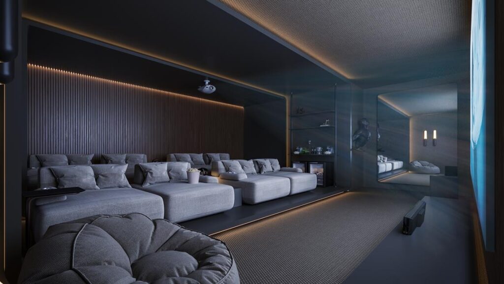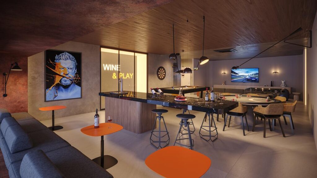 A recepção, o salão de festas, a academia, o salão de jogos, a brinquedoteca, a sauna e os demais ambientes foram concebidos para proporcionar experiências de convivência e contemplação em espaços sofisticados. No apartamento garden e na cobertura, a mesma premissa de exclusividade e bem-estar se mantém, consolidando o projeto como referência em alto padrão. Além disso, outros ambientes como mini market, sala de cinema, sala de reunião e espaços de convivência foram pensados para oferecer experiências completas aos moradores.