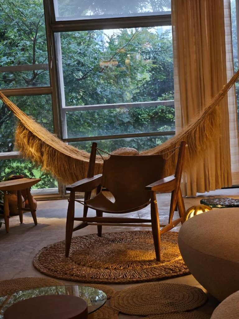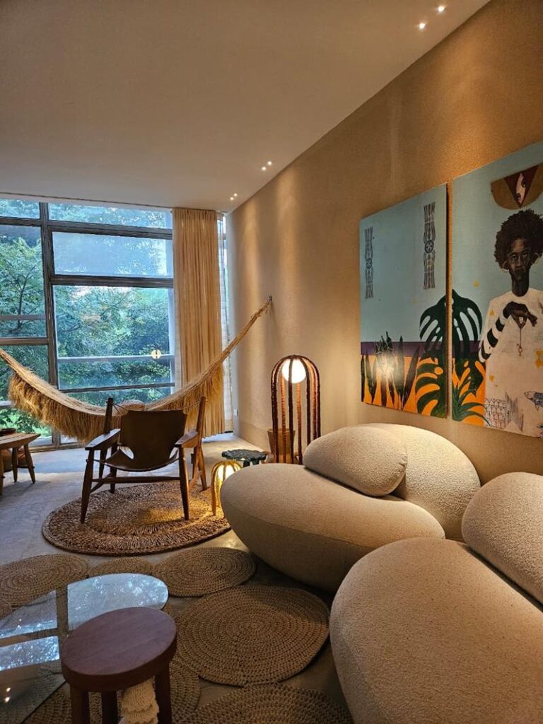 O projeto reúne peças de artistas como Henrique Viudez, designers como Léo Ferreiro e Érico Gondim, além de criações do estúdio Desconexo Design e obras da Galeria Leonardo Leal. A presença de arte têxtil, cestaria e mobiliário autoral ajuda a construir uma atmosfera que remete ao litoral de forma sensível e contemporânea.