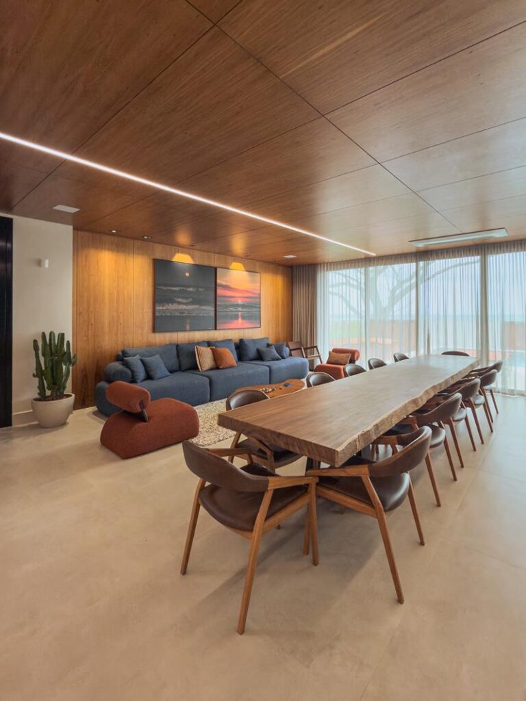 “Ela contribui para um ambiente confortável e valoriza os materiais, evitando contrastes marcados e criando uma atmosfera mais uniforme ao longo do dia”, diz Priscila.