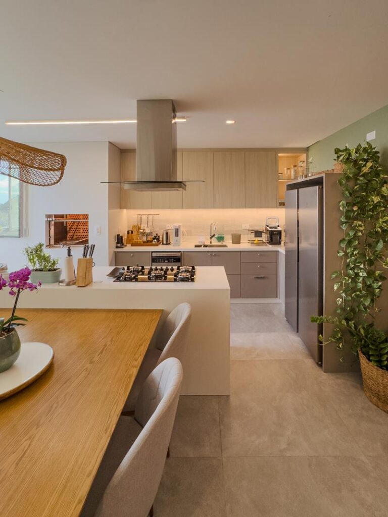 “Hoje, as casas de férias precisam de elementos a que não precisam ser explicados e, sim, percebidos e vividos. Essa mudança aparece na escolha de materiais e na construção dos ambientes, por isso indico muito o uso de madeira, pedra e fibras naturais para criar espaços mais acolhedores, com textura e variação, sem depender de excessos visuais. A paleta tende a cores neutras, que se mantêm atuais com o passar do tempo e facilitam a composição”, explica Priscila.
