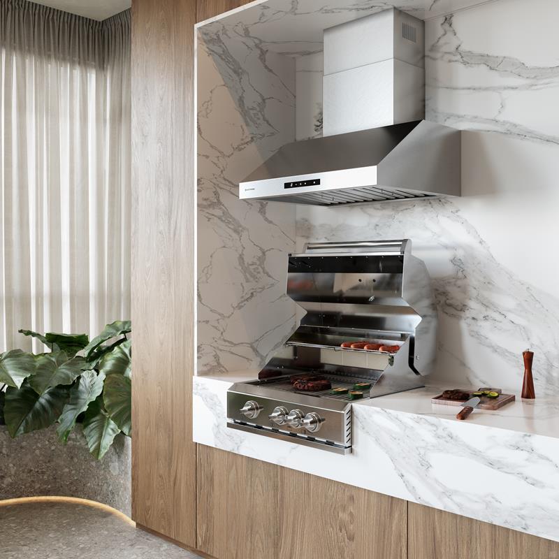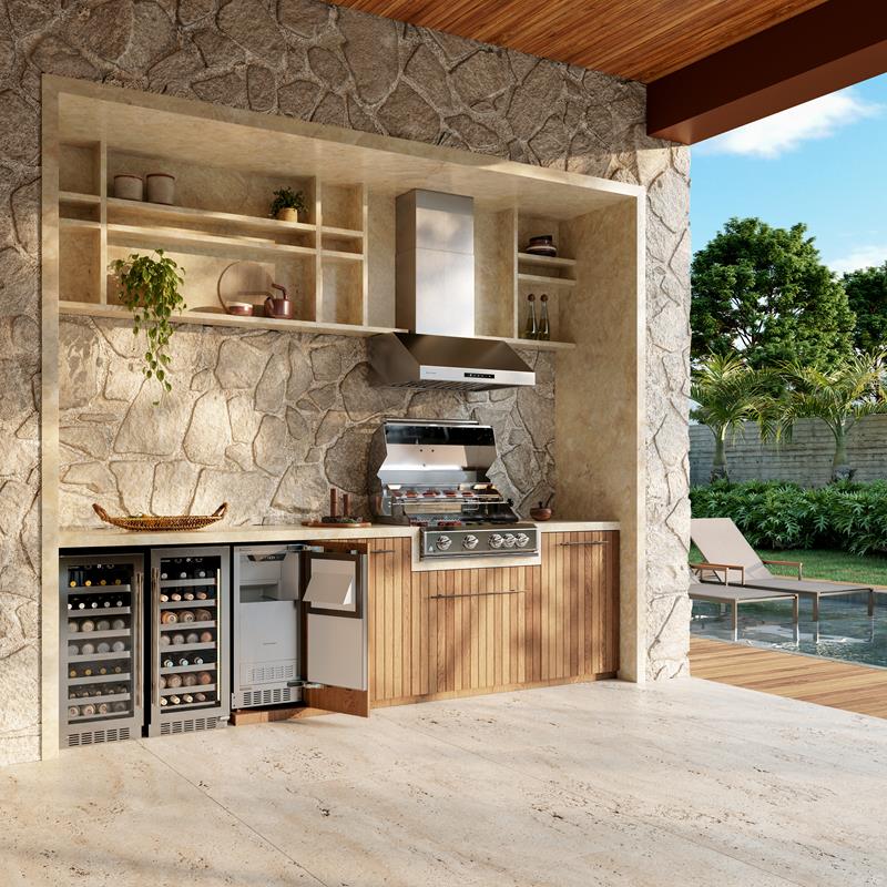 Construídas inteiramente em aço inoxidável 304, as churrasqueiras oferecem durabilidade excepcional, resistência à oxidação e excelente performance. O design contemporâneo, ao mesmo tempo robusto e funcional, integra-se com facilidade a ambientes planejados, elevando o padrão estético e o conforto do espaço.