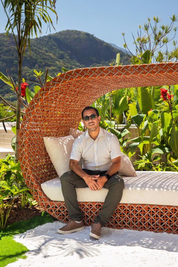 Com alma carioca e atmosfera casual, o paisagismo transforma o espaço em um refúgio tropical, desenhado para acolher o público entre ilhas de vegetação exuberante e caminhos de areia que remetem ao entorno praiano. “Queríamos que o visitante se sentisse parte da paisagem — não apenas observando um jardim, mas vivenciando uma experiência botânica, um verdadeiro oásis dentro da mostra”, explica Julio Sousa, paisagista responsável pelo projeto.