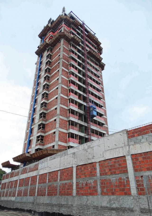 “Estamos concluindo a décima oitava laje do total de vinte, iniciamos a instalação do contramarco e a execução do revestimento interno, com o reboco. A partir de junho, a previsão é de instalar um dos elevadores e executar os pontos do piso para receber a cerâmica”, especifica.