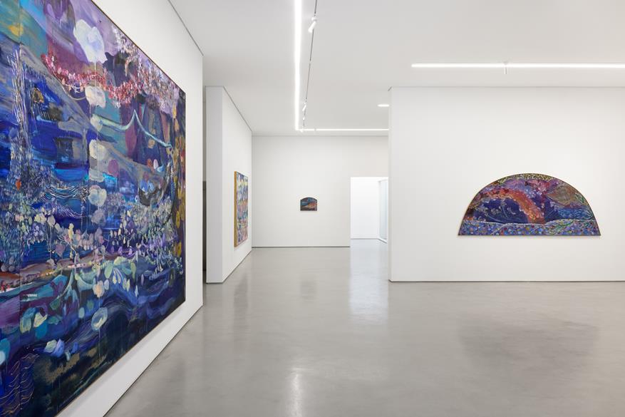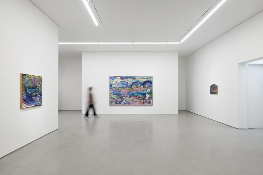 As paisagens que constrói são fantásticas, caleidoscópicas, marcadas por formas orgânicas e uma luminosidade singular. Ao utilizar tinta a óleo e bastão oleoso sobre tela e linho, elabora um repertório imagético em constante transformação, no qual figura e fundo se misturam.