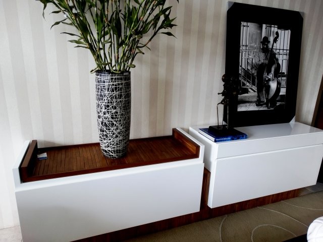 Pensando nisso, a designer de móveis Larissa Diegoli desenhou o buffet Ocara, pela Hadra Artefactos, que vai além da funcionalidade ao incrementar detalhes como a bandeja embutida em bambu que incorpora as funções de buffet e aparador, visto que com o seu design leve dá pra usá-lo na sala também.