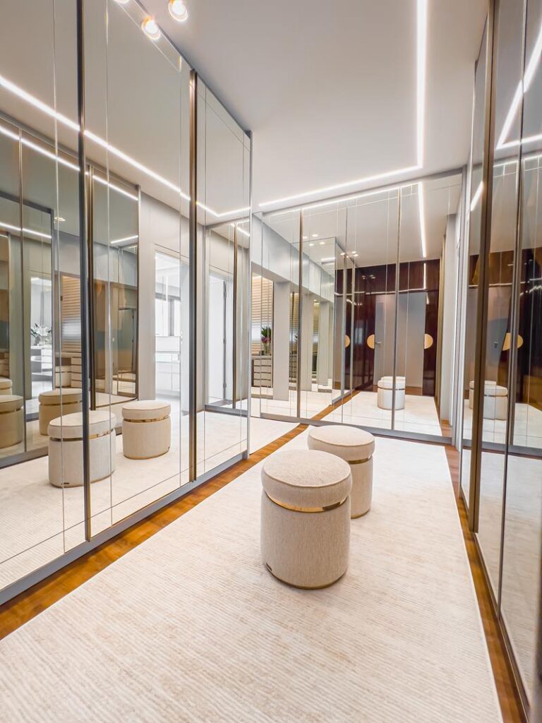 A arquiteta Roberta Zimmermann explica que a demanda por closets amplos e banheiros duplos reflete não apenas uma questão estética, mas também de convivência. “Hoje o luxo é ter individualidade dentro do lar. Um closet bem dividido, equilibrando o perfil masculino — mais funcional — e o feminino — mais detalhista — otimiza a rotina e até evita conflitos”, comenta.