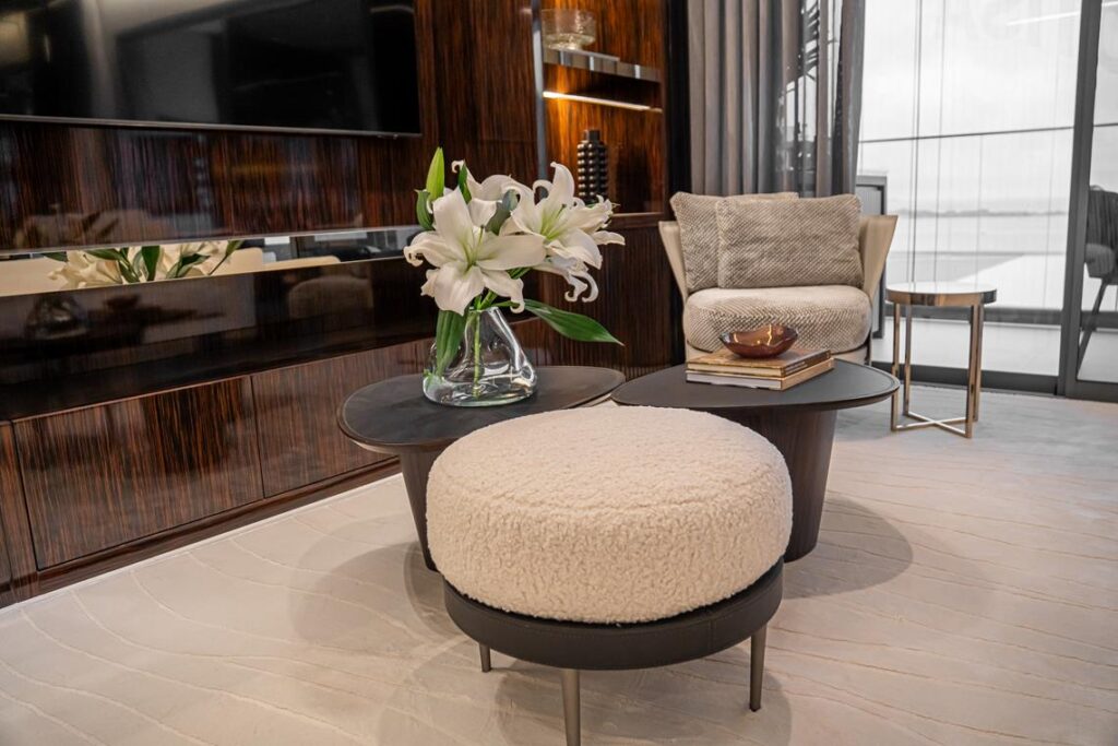 O apartamento decorado também reflete a elegância e a exclusividade do empreendimento da Lotisa, o Skyline, que deve ser entregue em 2026. Conta com unidades com 3 ou 4 suítes, metragens que variam de 166 m² a 222 m², e 3 ou 4 vagas de garagem. Na área de lazer, o residencial conta com comodidades de resort: piscina aquecida com raia para natação, piscina infantil, solarium e fireplace com vista para o mar, mini quadra, playground, kids club, espaços gourmet e para festas, poker bar, academia by Life Fitness, saunas úmida e seca e beauty space.