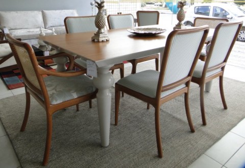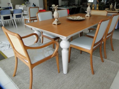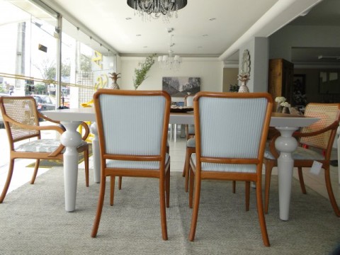 A mesa de sala de jantar com toque clássico, feita com laca e acompanhada de cadeiras com detalhes em palha é a sugestão da loja Azteca, da Avenida Getúlio Vargas, para a composição de um ambiente clean e sofisticado.