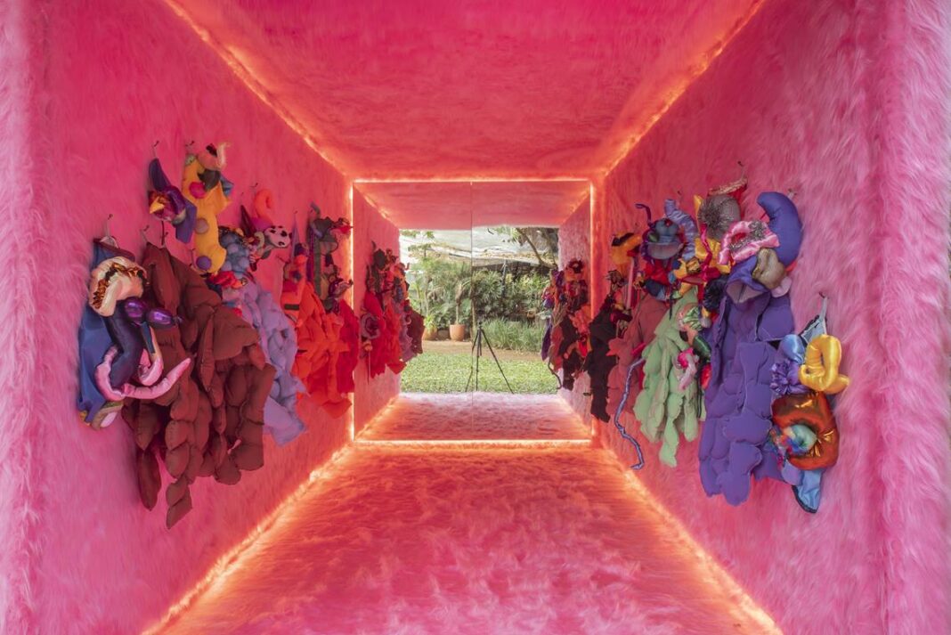 No terceiro espaço, o ambiente é carnavalesco, divertido e lúdico, criado pela carioca Maria Lynch, no qual os visitantes poderão adornar-se, em referência a uma das maiores festas populares do país. A artista Mavi Morais, de origem Kariri-Sapuyá, da Terra Indígena Caramuru-Paraguaçu, no sul da Bahia, leva para o quarto contêiner seu trabalho com colagens, pela primeira vez fora do ambiente digital e em formato instalativo. A obra faz o encontro entre os adornos e as possibilidades suscitadas pelas narrativas indígenas brasileiras.