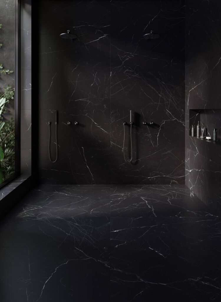 Símbolo de equilíbrio e intensidade, Marquina traduz a elegância absoluta da pedra negra. O contraste entre o clássico e o contemporâneo conecta este mármore a projetos atemporais, marcados por sobriedade e sofisticação.