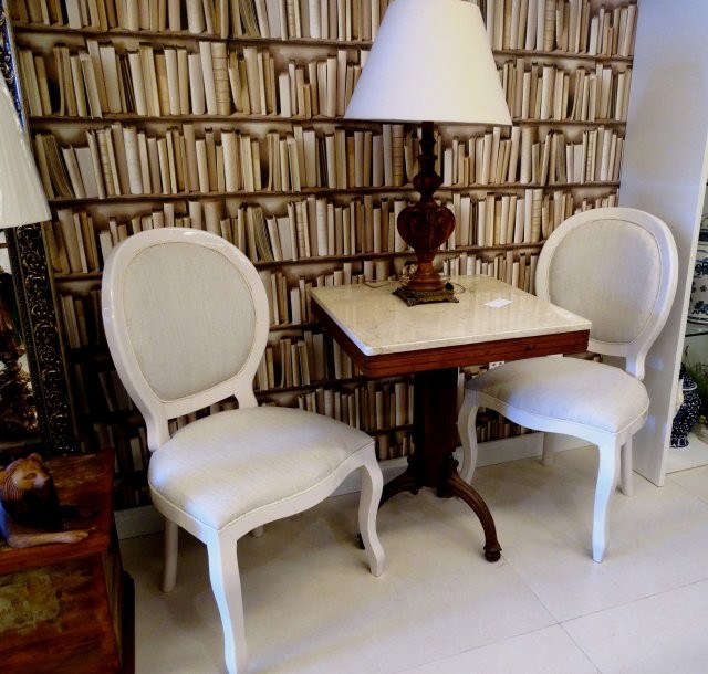Muito usadas na época de Luis XVI, as cadeiras medalhão trazem um toque refinado ao ambiente e remetem, de maneira sutil, ao passado voluptuoso da época dos grandes reinados.