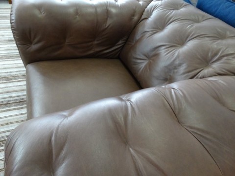 Seu modelo é uma releitura do estilo chesterfield, tradicional sofá criado na Inglaterra durante a era vitoriana, 1837-1901, que tem braços arredondados na mesma altura das costas e tem acabamento em capitonê.