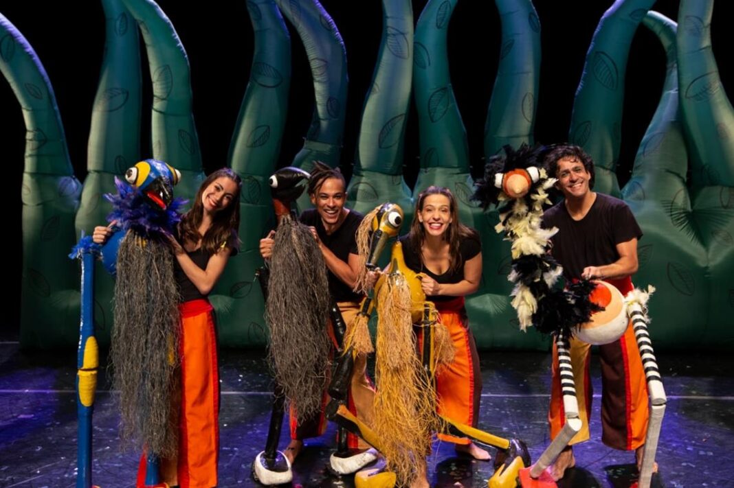 O espetáculo “Bichos do Brasil” celebra a diversidade da fauna nacional por meio de uma combinação de bonecos, música e coreografia, recriando o ambiente das florestas de forma poética e sensorial. Diferente das fábulas tradicionais, que “humanizam” os animais, a montagem valoriza os elementos da natureza e suas influências sobre a cultura popular.