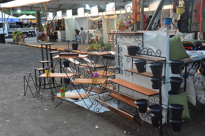 Dentre os móveis expostos durante a mostra agropecuária estão prateleiras, rack, porta-caçqueiros, porta-vinhos, bancadas e diversos outros produtos. Jailton Dias ressalta que, além de todo este leque de produtos, sua empresa também produz sob encomenda modelos diversos sugeridos pelos próprios clientes.