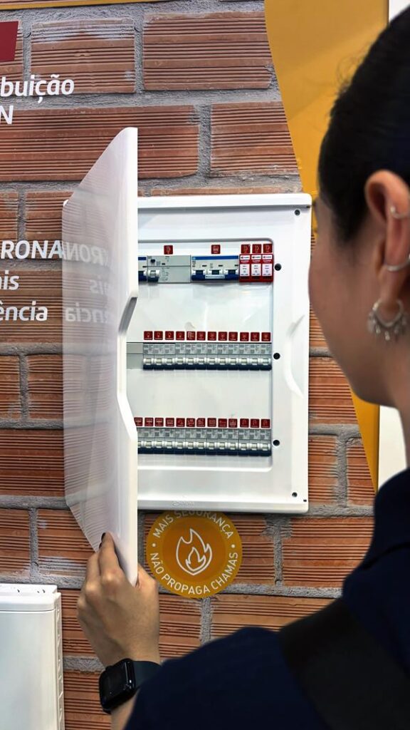 No campo das instalações elétricas, o Quadro de Distribuição de Circuitos 48 DIN (QDC 48) chega para atender projetos de maior porte ou com alta demanda de circuitos. Com capacidade para até 48 polos de disjuntores no padrão DIN e 33 polos no padrão NEMA, o equipamento oferece versatilidade para diferentes configurações. Entre os diferenciais, estão a porta com sistema reversível em peça única, sem emendas e com abertura de 180 graus, que facilita o acesso para instalação e manutenção, além da regulagem externa do trilho DIN, que simplifica ajustes em obras. Fabricado com material não propagante de chamas, o produto agrega uma camada adicional de segurança às instalações elétricas.