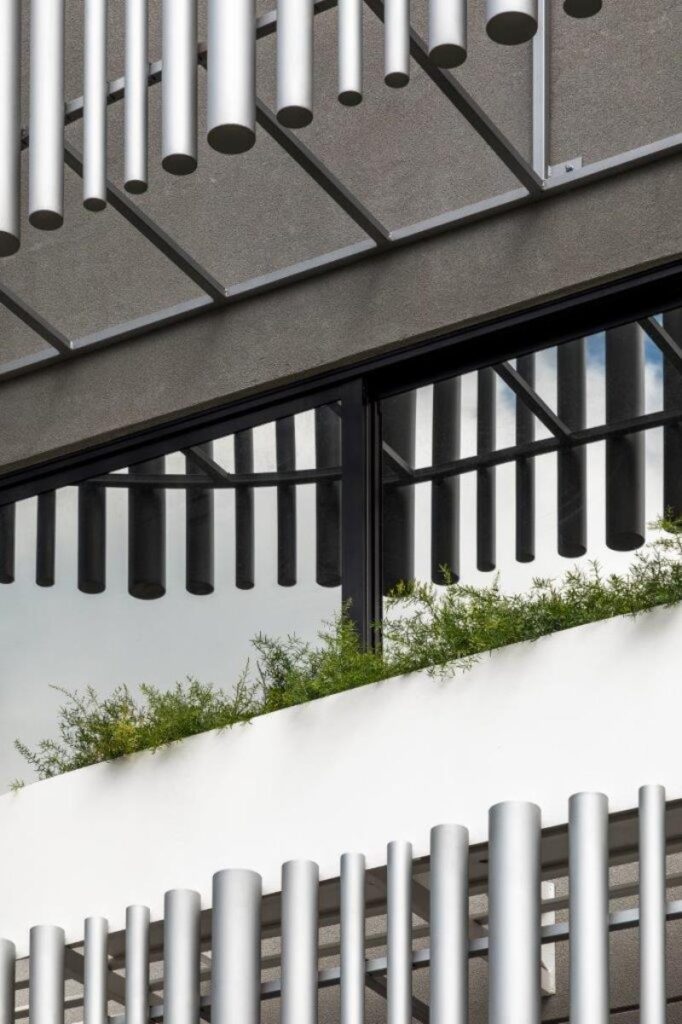 A partir da base hexagonal original, o projeto incorporou brises metálicos circulares que fluem em movimento e se conectam ao conceito de natural high tech. Entre os destaques estão a integração entre brises e floreiras, a curvatura da passarela, a naturalidade das plantas e o uso do arkowall, recursos que reforçam a combinação de tecnologia e movimento buscada desde o início.