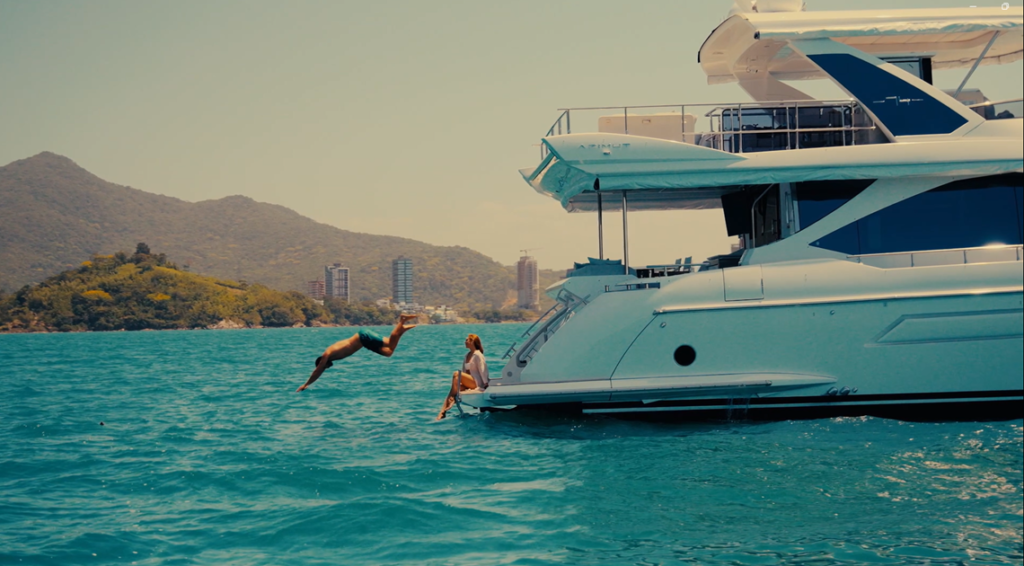Para capturar o cliente triple A neste volume, a empresa substituiu o showroom tradicional por uma imersão técnica: sobrevoos permitem a análise da expansão territorial urbana, enquanto a navegação demonstra a infraestrutura náutica da região.